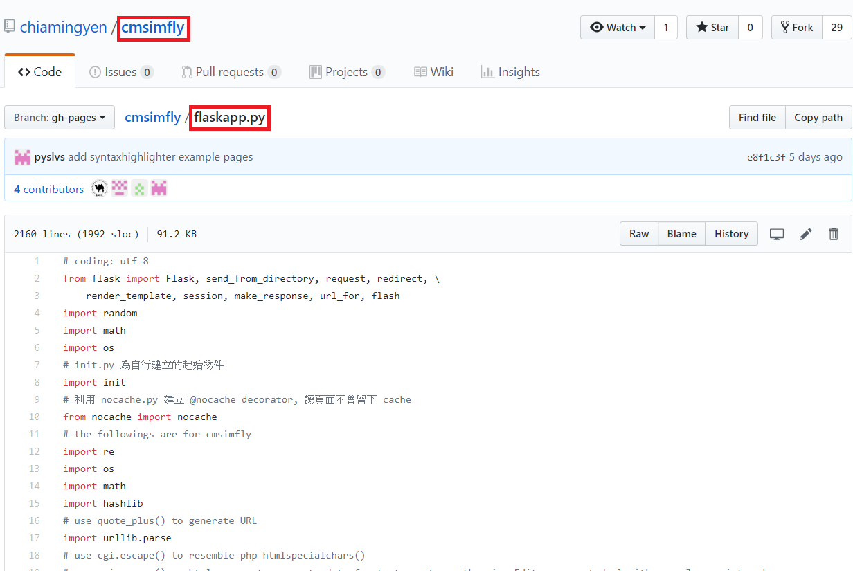 3. 升級最新的cmsimfly倉儲中的 flaskapp.py,將 flaskapp.py的原始碼複製到倉儲的資料夾內,將原本的蓋掉做更新。