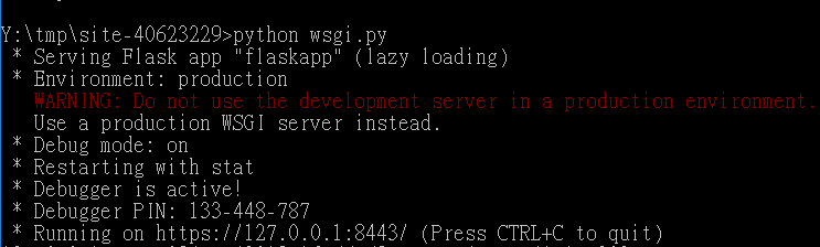 3.將倉儲 clone下來,利用python wsgi.py的指令在近端動態網頁進行修改。